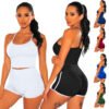 MD24ST224 summer new short sleeve off shoulder crop top and short skirt 2 piece set solid bodycon casual women's set