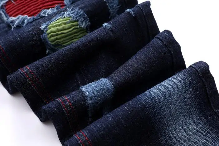 Custom Quality Big Size Men Jeans Patched Ripped Distressed Slim Fit Jeans For Man Patchwork Denim Trousers