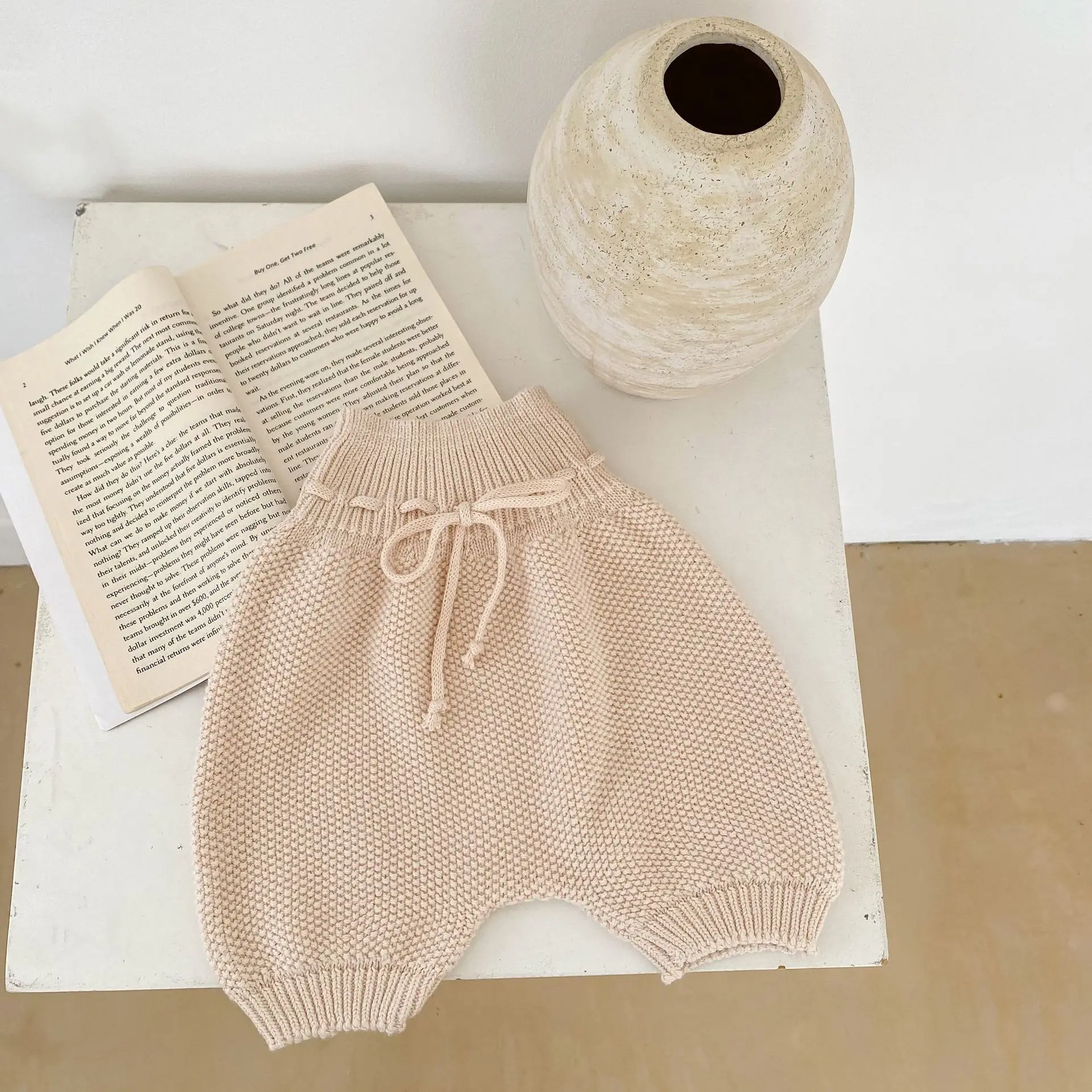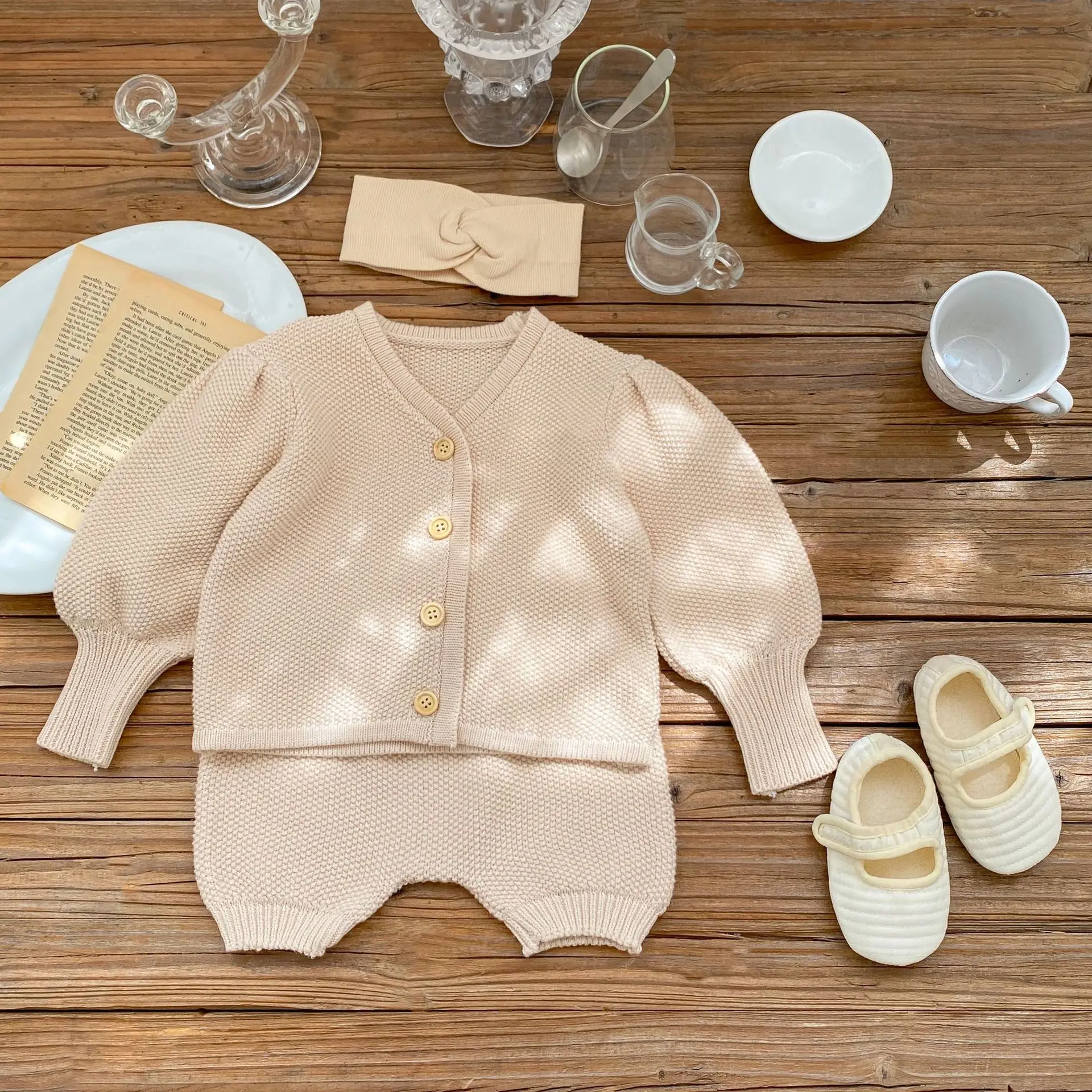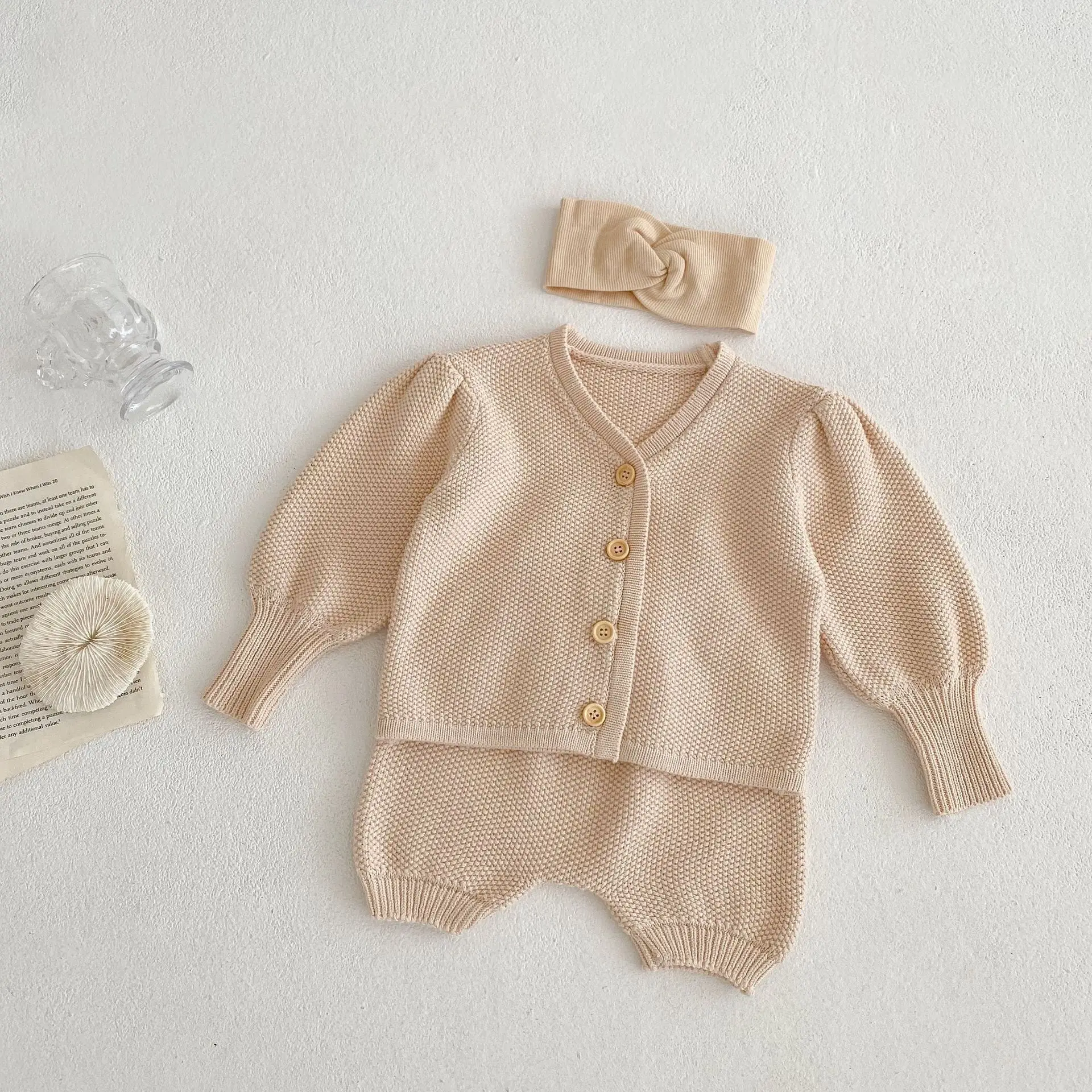 infant spring knitted clothing sets newborn solid color knit top pants two-piece suit baby simple $1.70