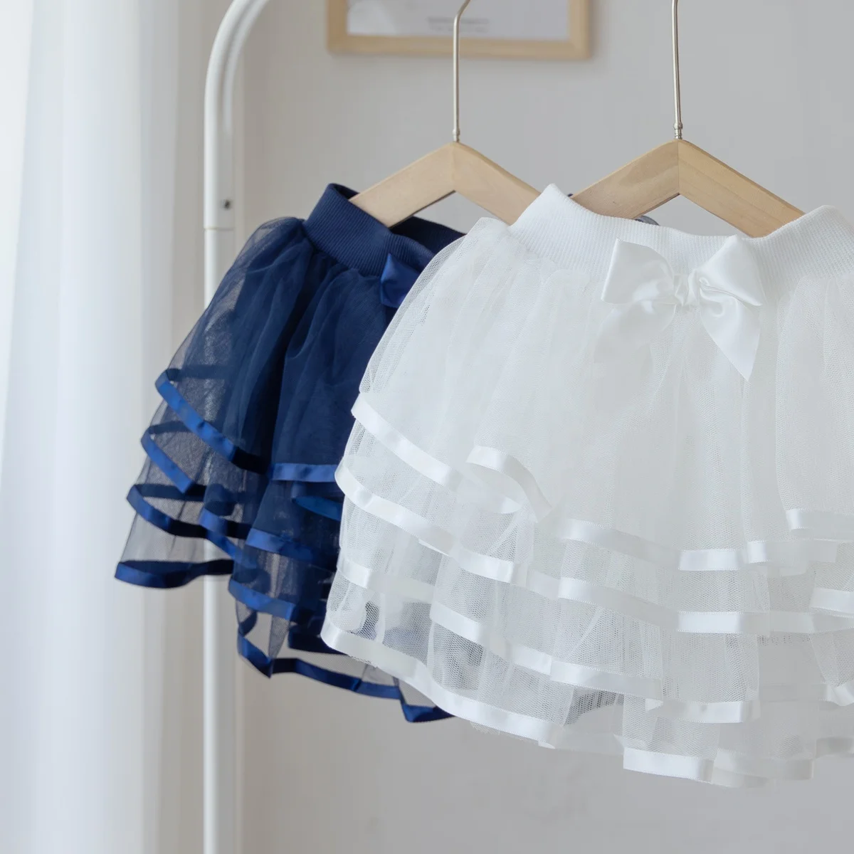 Kids Skirts Pleated Tier Skirt Bow Toddler Tutu High Quality Baby Girl Layer Tulle Skirt Kids Hot Pink Dark Blue Tutu