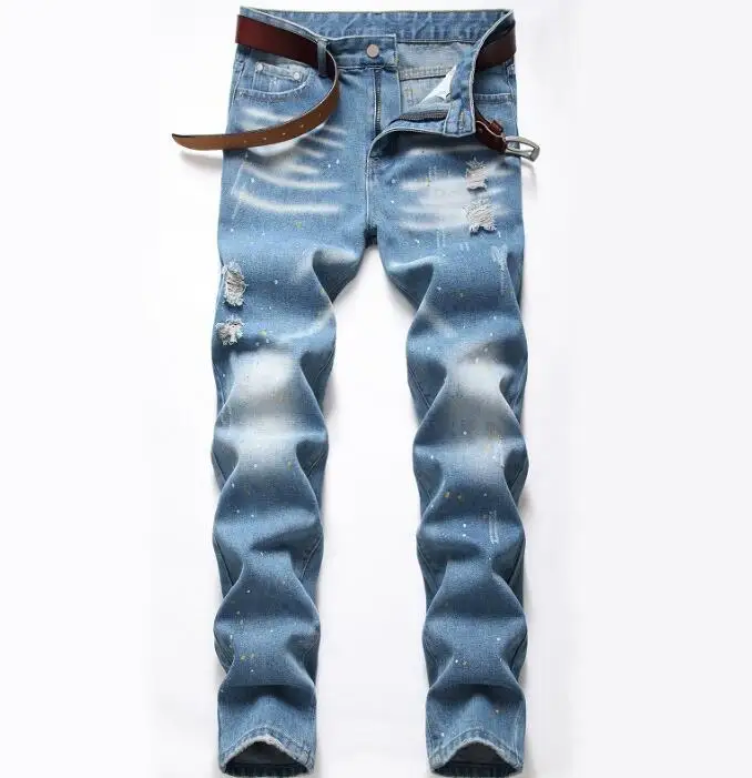 New Men Stacked Jeans Splash Ink Print Distressed Denim Jeans Vintage Ripped Blue Men Slim Fit Jeans , Find Complete Details about New Men Stacked Jeans Splash Ink Print Distressed Denim Jeans Vintage Ripped Blue Men Slim Fit Jeans from Xiamen Jianyi Xinhong Trading Co., Ltd. Supplier or Manufacturer on azedenstore.com