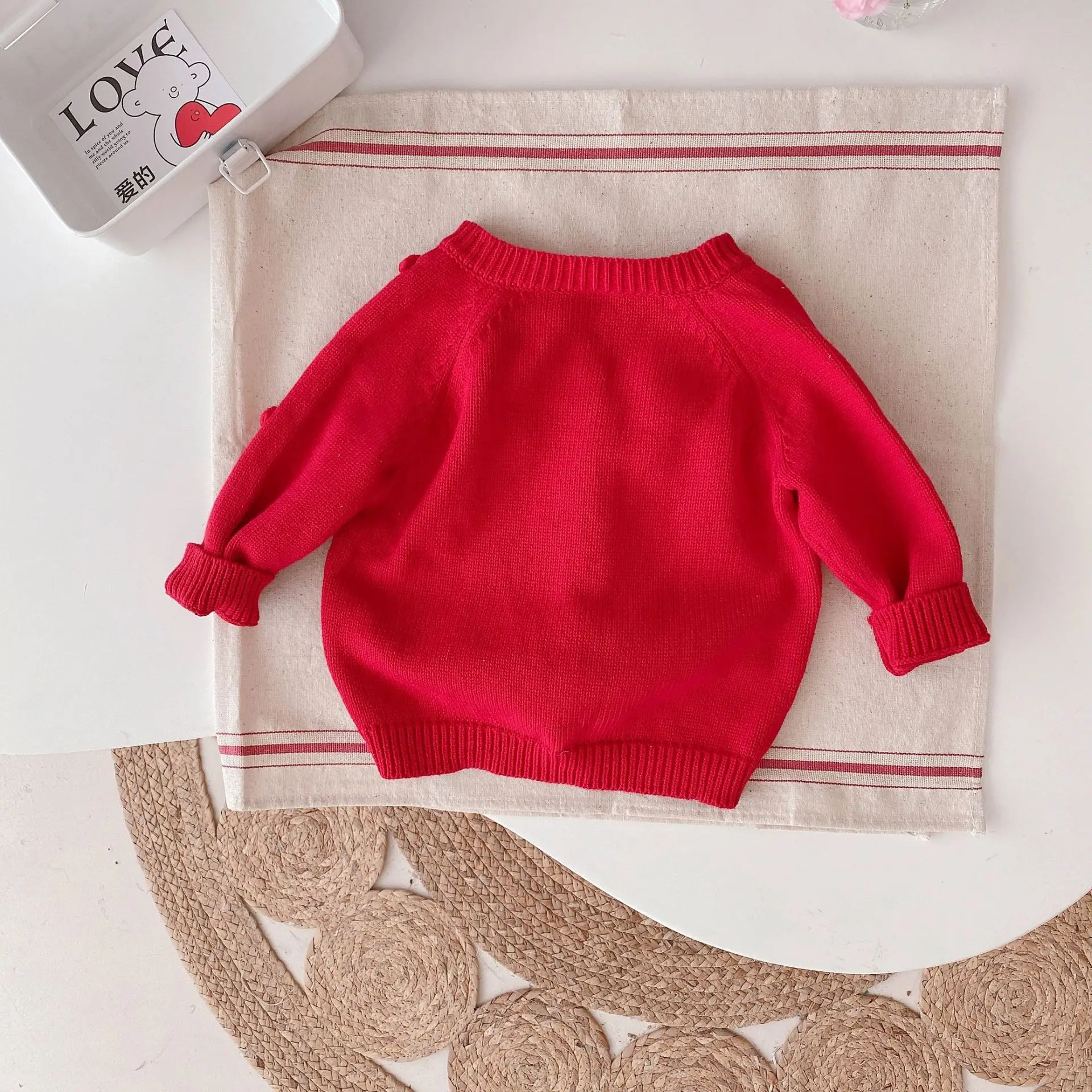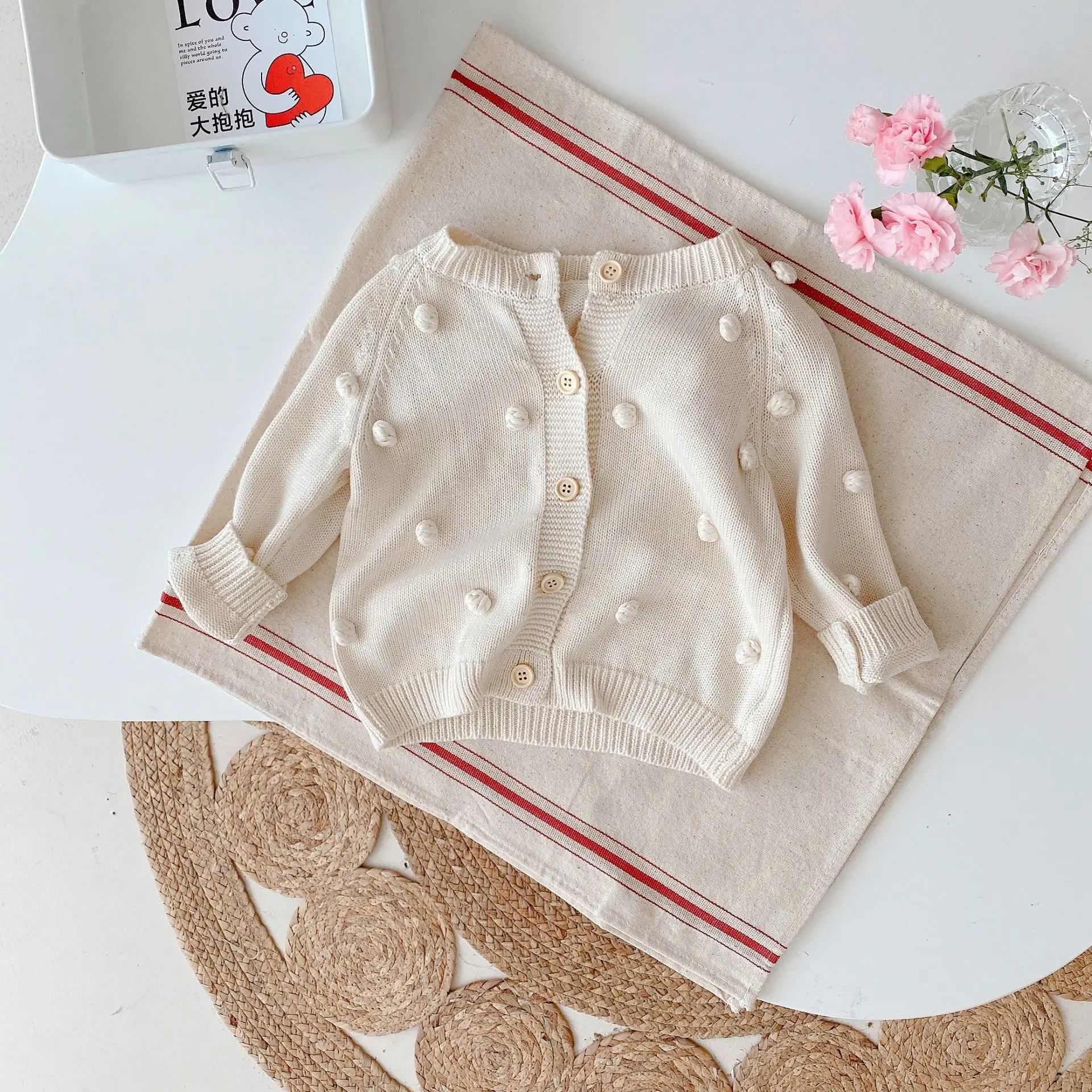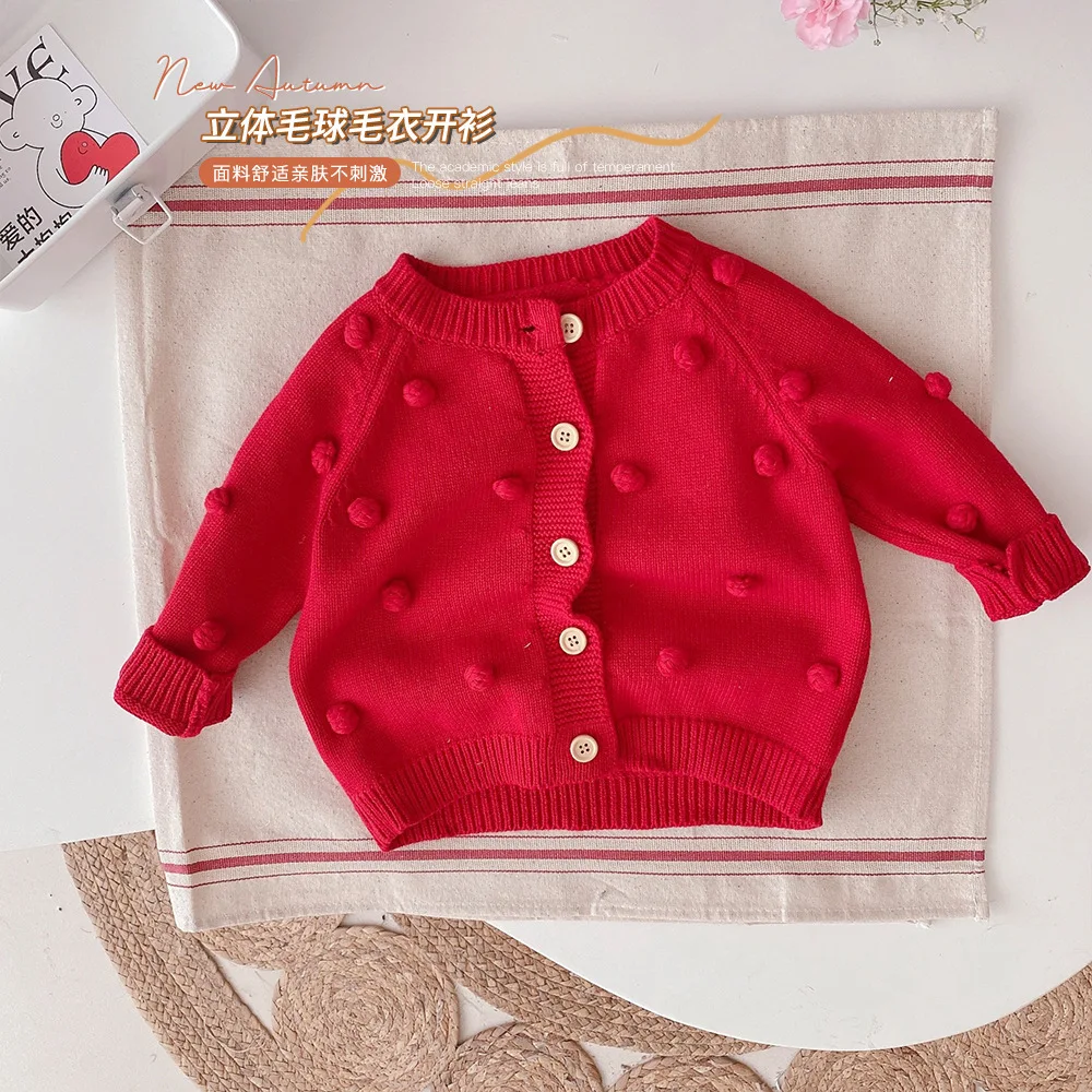 Q30302 spring winter flower ball crochet sweaters unisex solid color long sleeve knitted baby cardigan