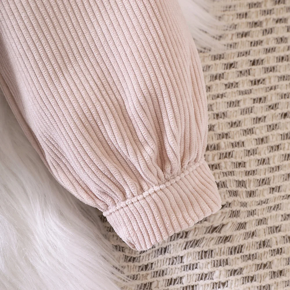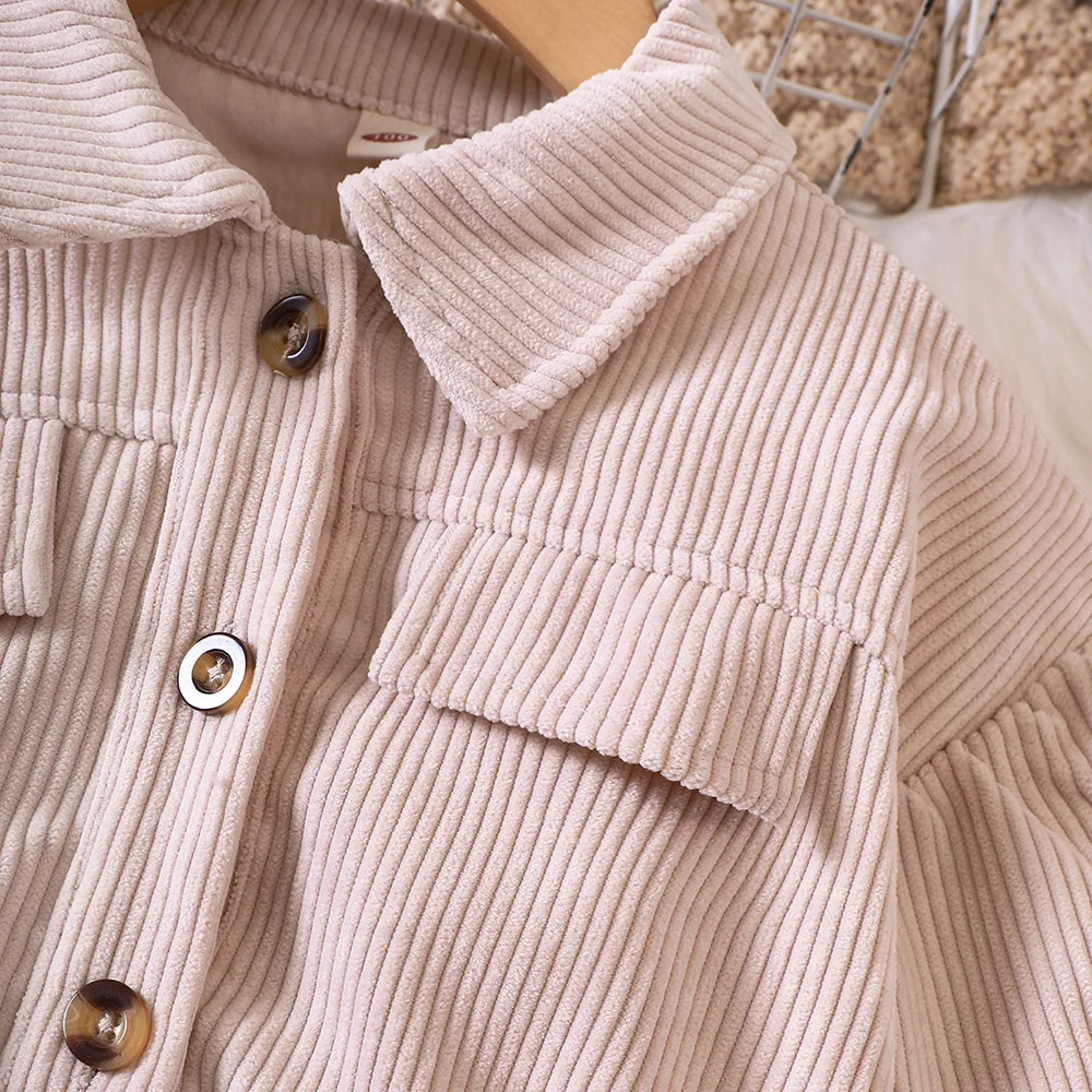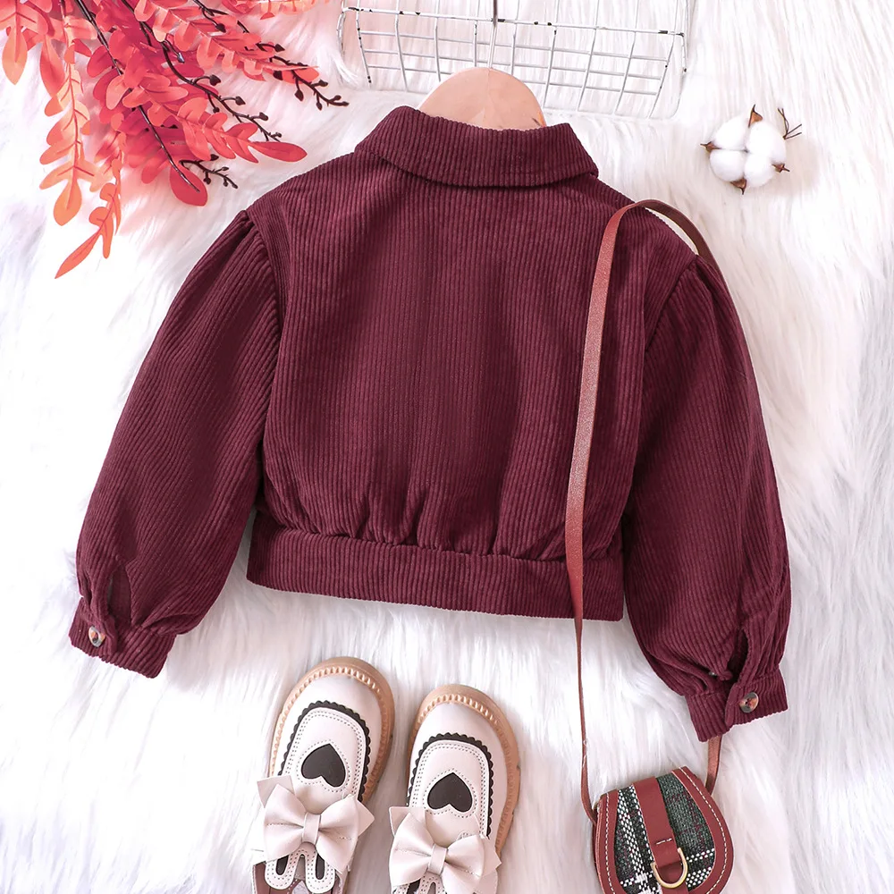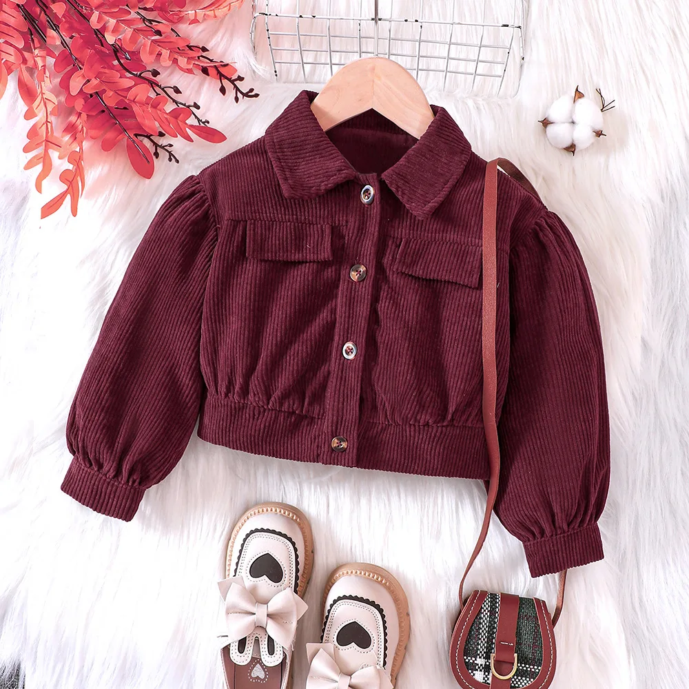 Q30789 Baby Toddler Solid color Lantern Sleeves corduroy Cardigan crop Top Corduroy Shirt Jacket for Girls