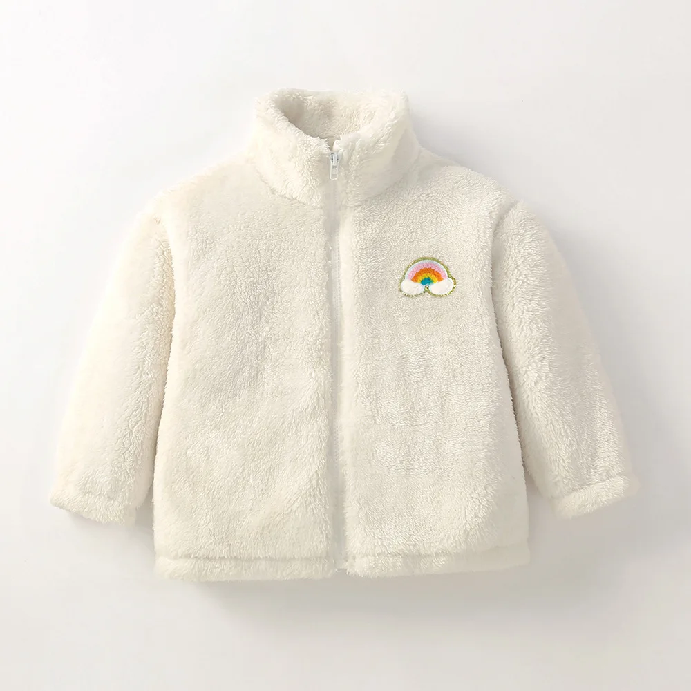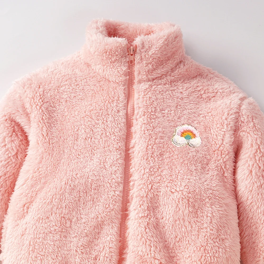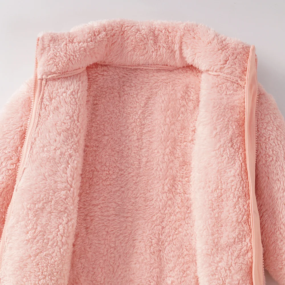 Q30791 Boys Girls Long Sleeve Soft Fuzzy Fleece Sherpa Full-zip Jacket Infant Baby warm Outwear solid fleece coart