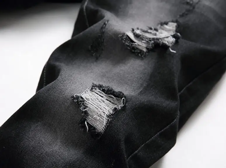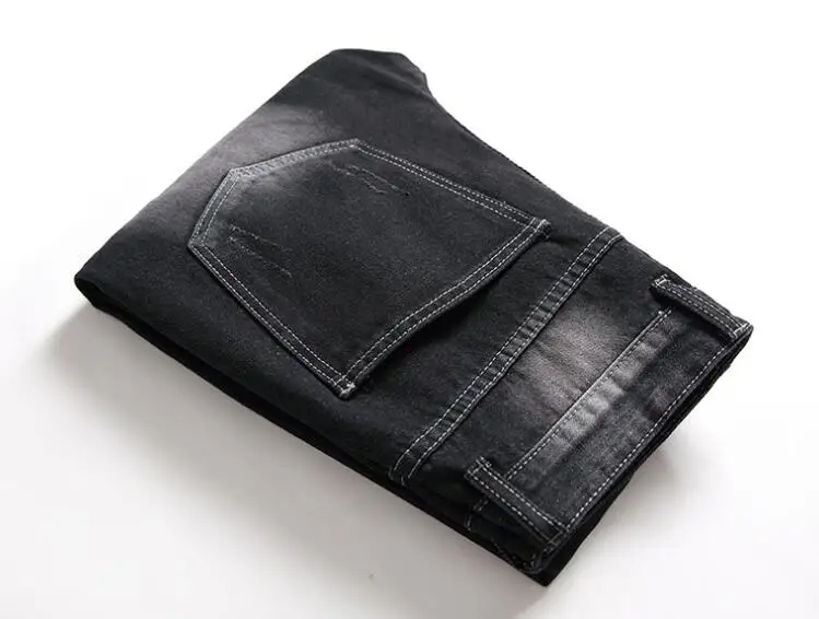 Slim Fit Jeans Men’s Distressed Destroyed Pants Art Patches Skinny Biker Black Jeans Slim Trousers men denim pants