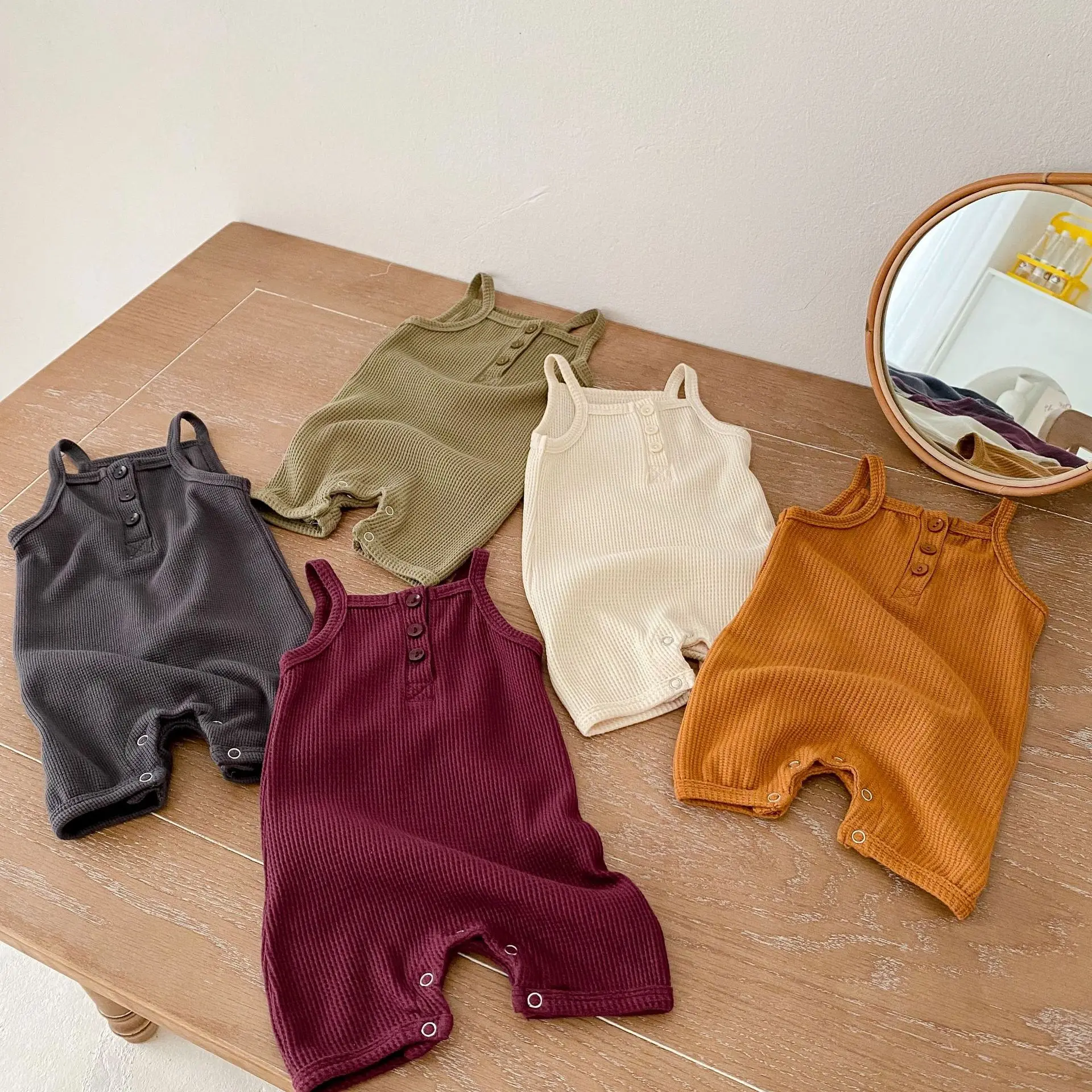 wholesale Baby Bodysuits Cotton solid Camisole Sleeveless chunky strap onesie Tank Top Clothes Outfit girl romper