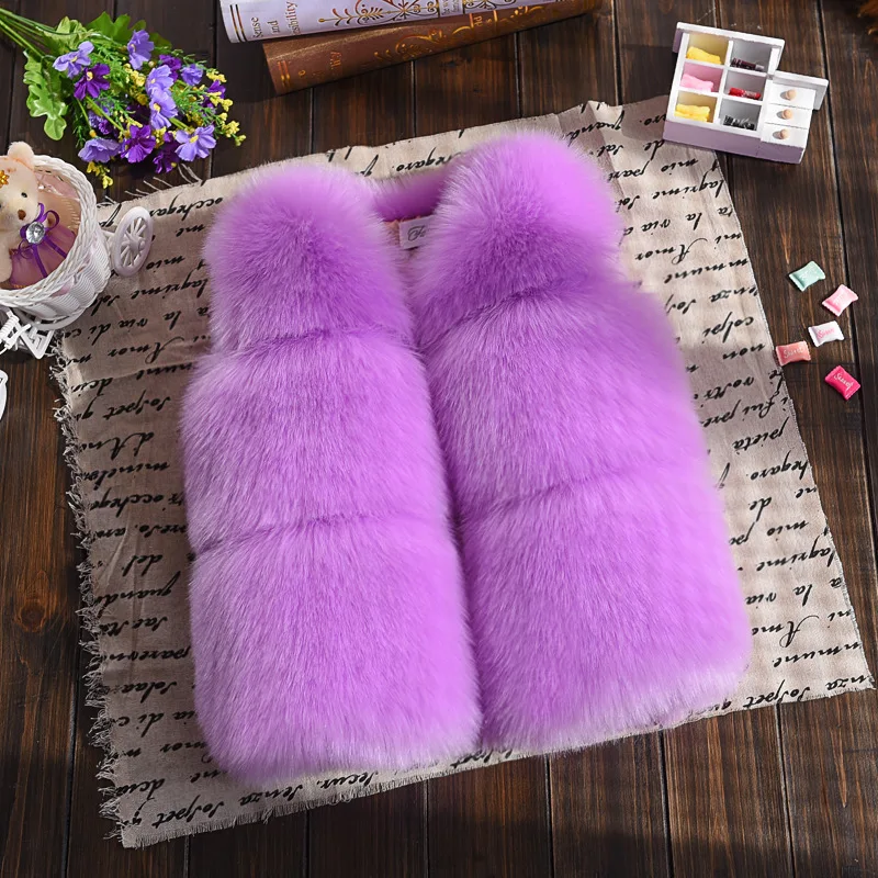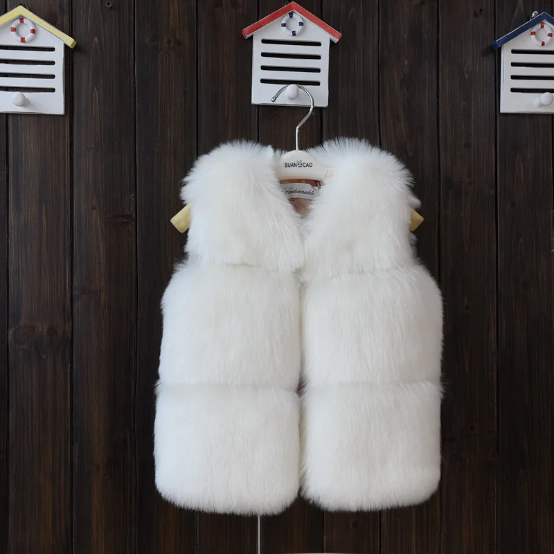 x21010 wholesale Faux fur vest for kids winter children fur coat warm winter solid fur jackets 6m to 10years