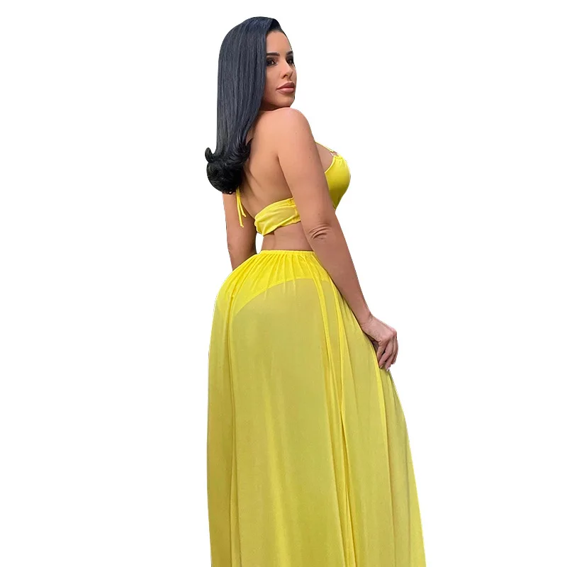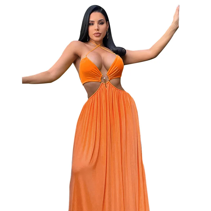Y208091 custom Hot Sales Suspenders Sexy Hollowed-out Holiday Dress Floor-length Summer Casual Dresses