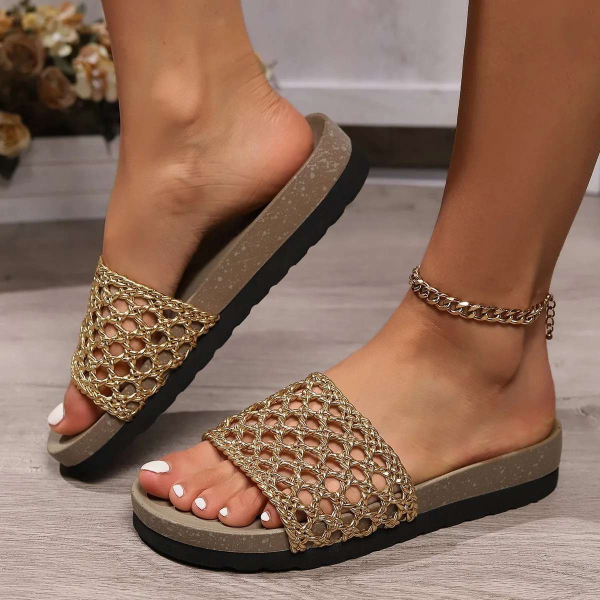 2024 Sandals new large size color woven casual flat slippers for women open-toed fashion flat shoes