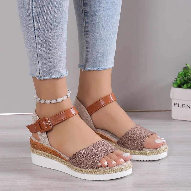 2024 plate-size braided platform sandals for women to wear beach sandals with wedges and buckles